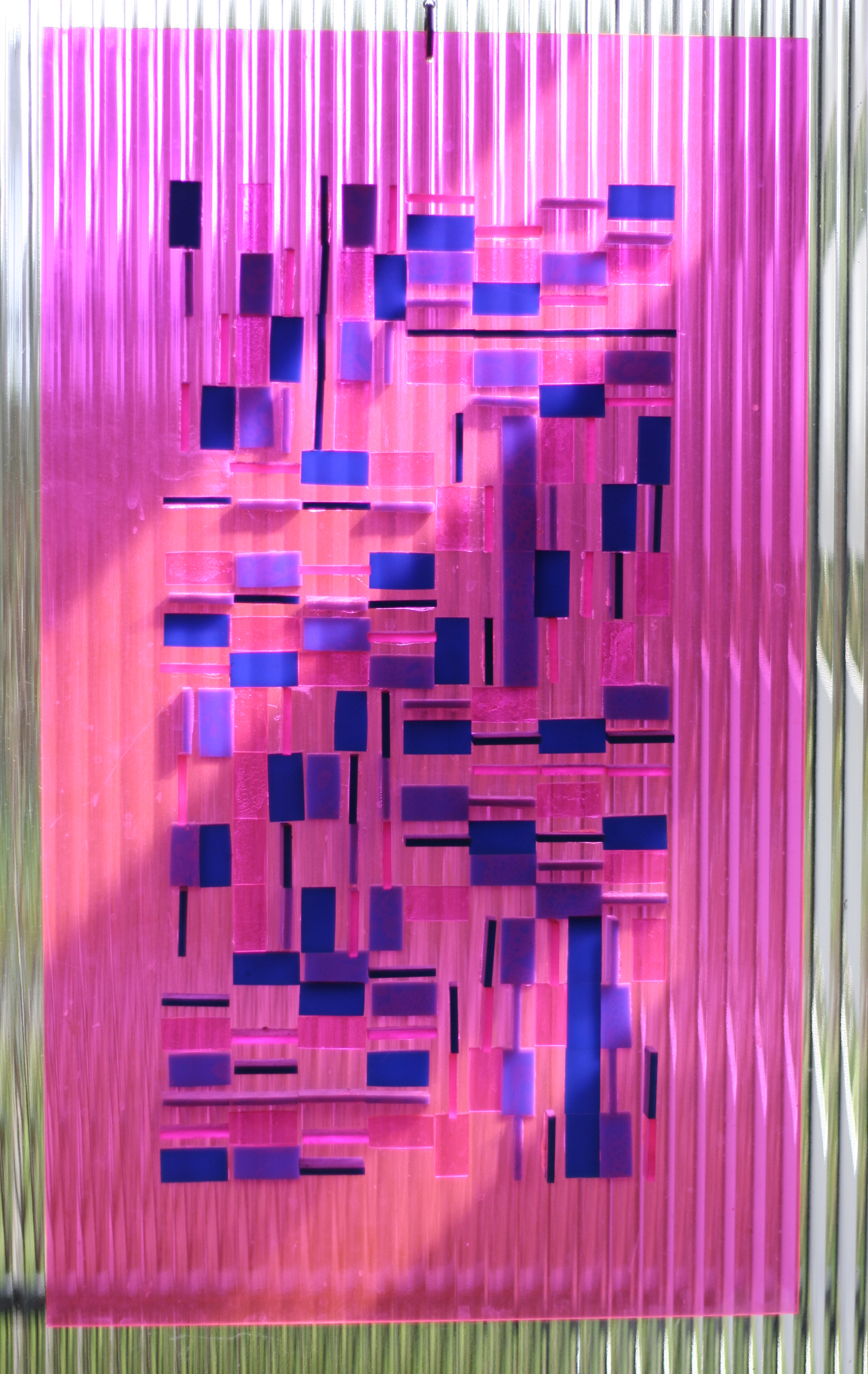 The sculpture in pink and blue Perspex hangs in my hall window and reminds me of the time it hung in my mother’s house filling her kitchen with a warm pink glow.