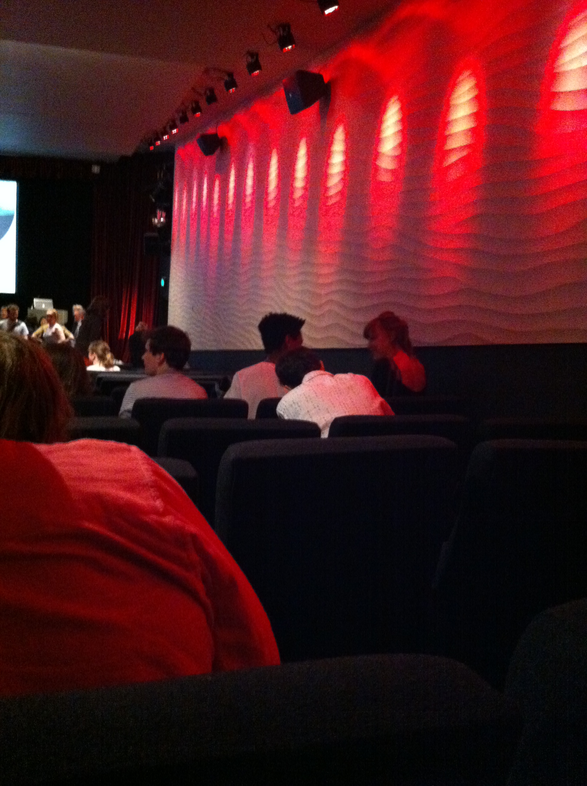 In the Barbican lecture hall I caught a glimpse of a man with the most interesting hair, he must have let it grow long all over and the had it sculpted like a topiaried box hedge. The dark angular shape stood out against the sculpted white plaster wall beyond making such a strong image that I felt I must attempt to record despite the fact that everyone was rising from their seats and pushing past. It was a fleeting moment and I only had a mobile phone, the low light and the urgency made for a blurry result.