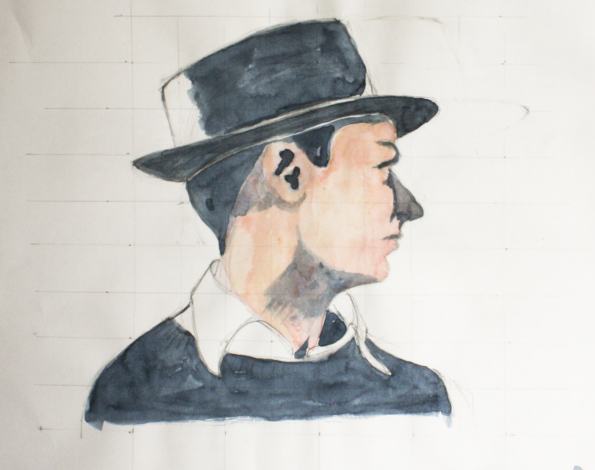 I think on balance the most recent one has in it that I am happy with than any of the others, it feels like I made a big leap forward in the last two or three versions, I felt I knew the contours and how to handle the paint the way I wanted. I tried a faint wash over all the background in No. 8 but decided I preferred the cream paper left alone in No. 9, although I have lost the bright edge to show the sunlight falling on the top of the hat. I think I might just add a little more shading to the lower lip and try to define the tip of the nose better.