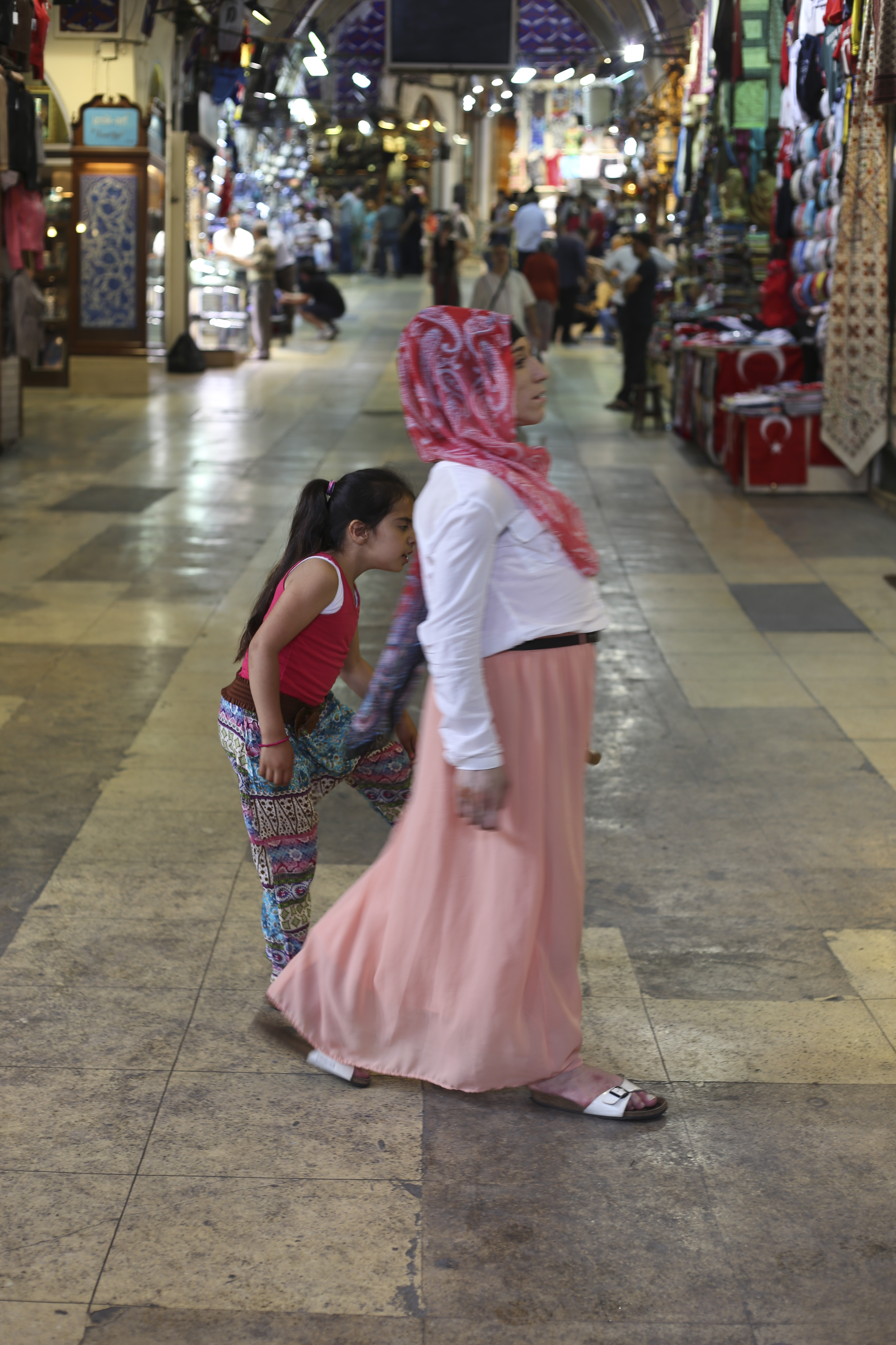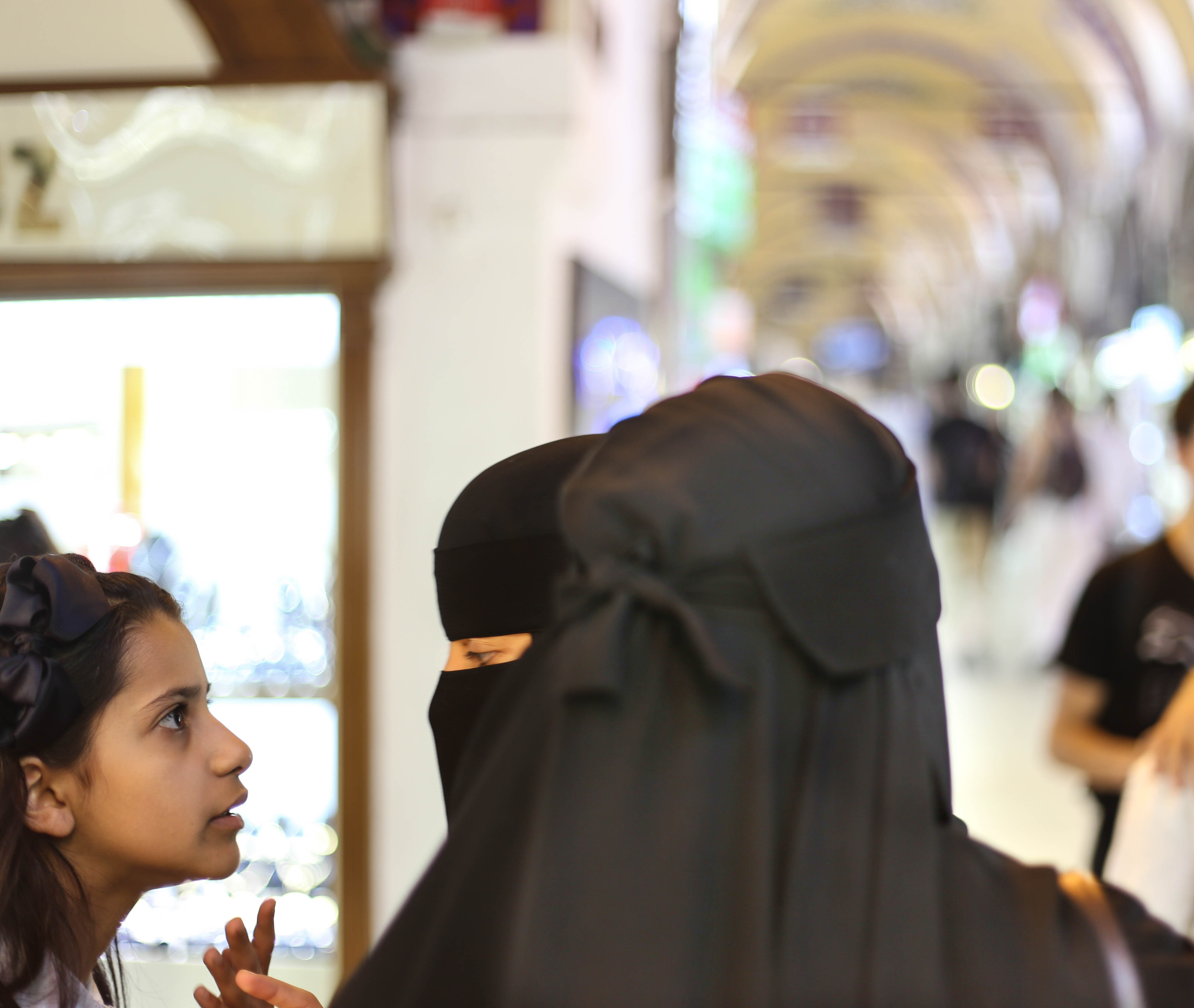 This young girl is not yet old enough to be wearing the hijab, she must be an expert at reading her mother’s eyes without seeing her full expression – she is watching her so intently.