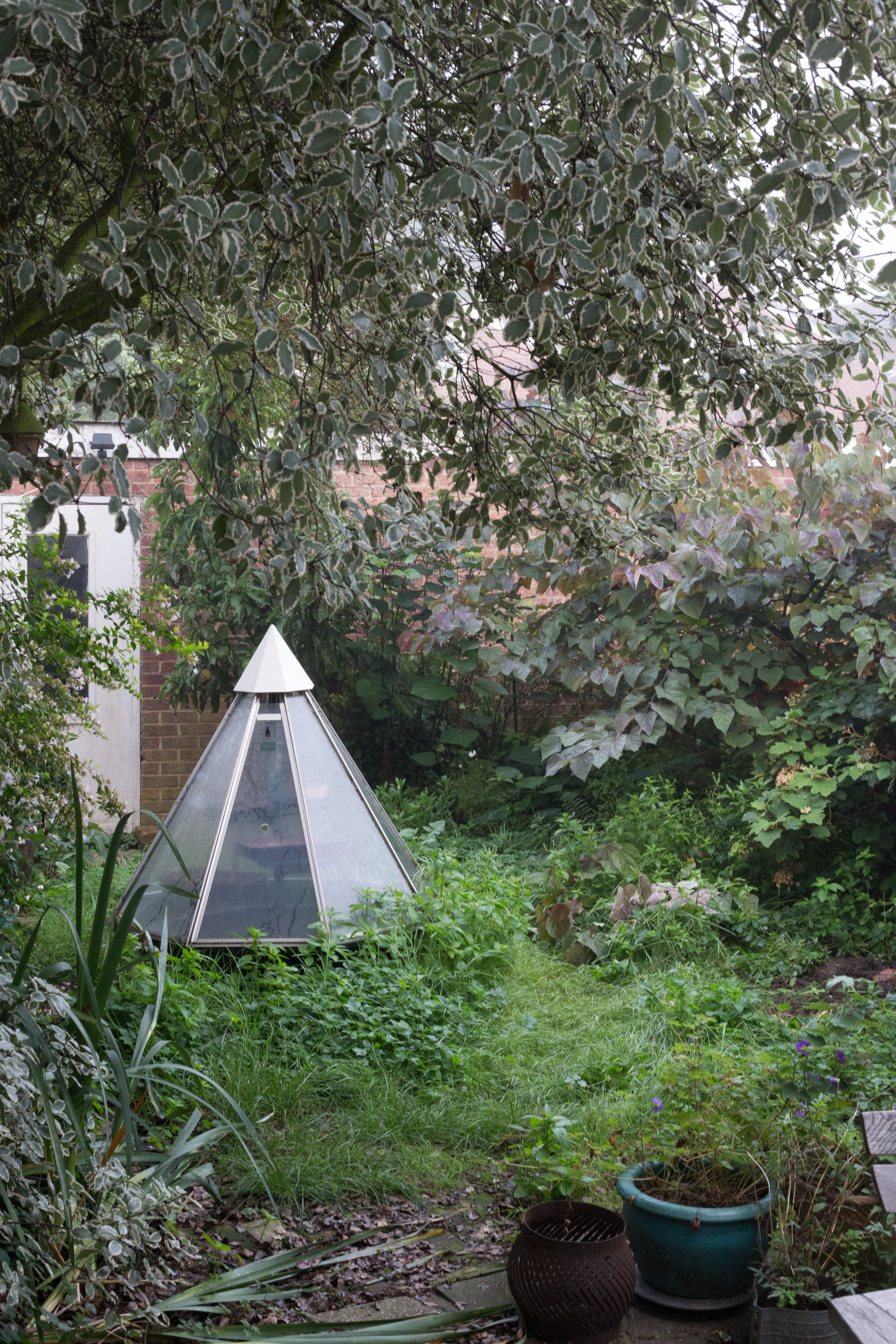 A pyramidal greenhouse, somewhat abandoned, sat sadly in the shaded side of the garden, the path to the garage had all but disappeared in the undergrowth.