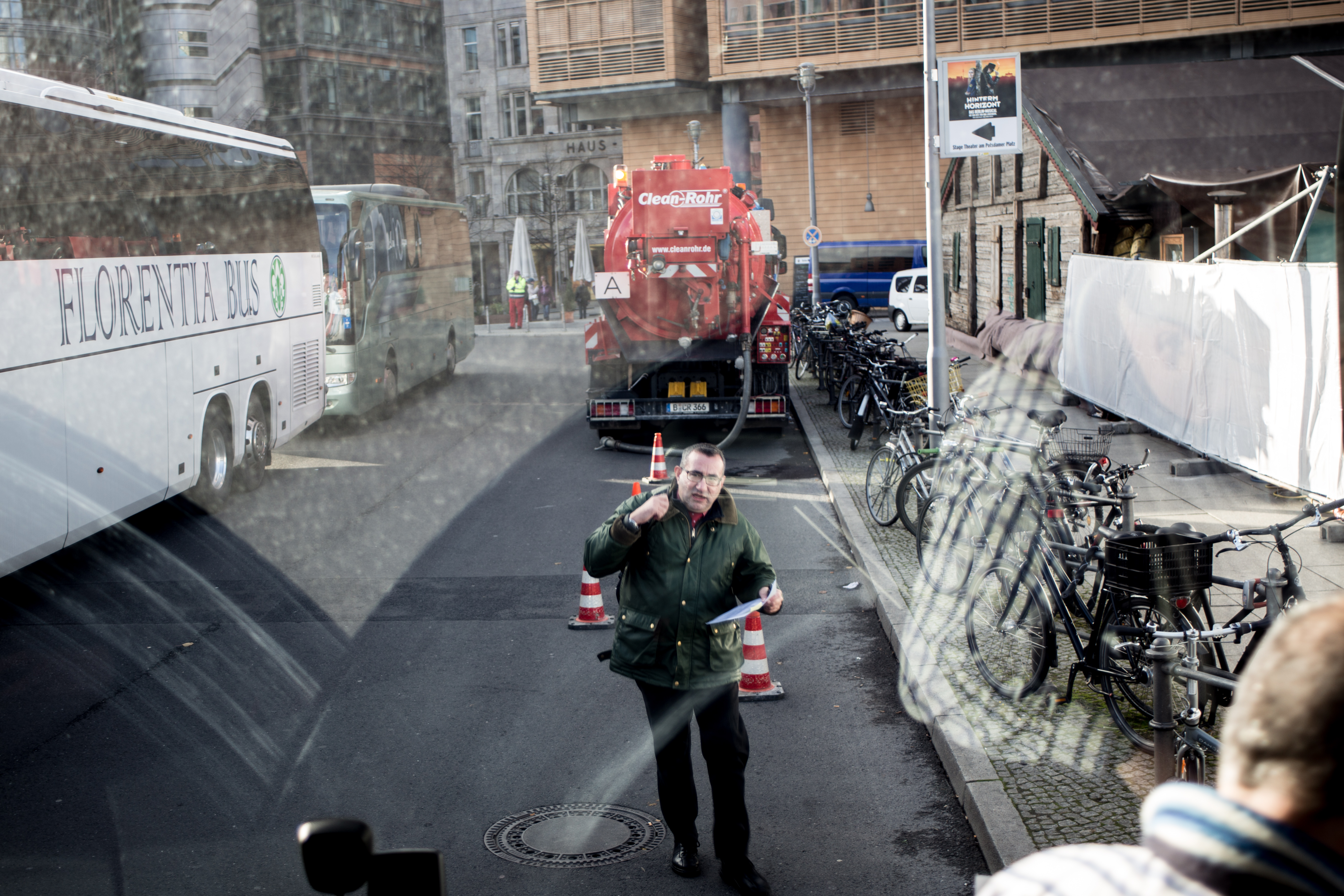 One day in Berlin is not enough – of course! I was there to visit the Bauhaus Archives, the most comprehensive representation of information about the mid 20th C design school. I also enjoyed a 3 hour coach tour with a certain Thomas who was the most informed and amusing guide I have ever met. He skilfully took us around or past every historic point, every breath-taking piece of modern architecture with an encyclopaedic knowledge of everything Berlin has to offer the coach-bound traveller. Due to lack of time we could only leave the coach twice and for just a few moments, so many of the photos are compromised by having been taken through the coach window as the coach was moving.