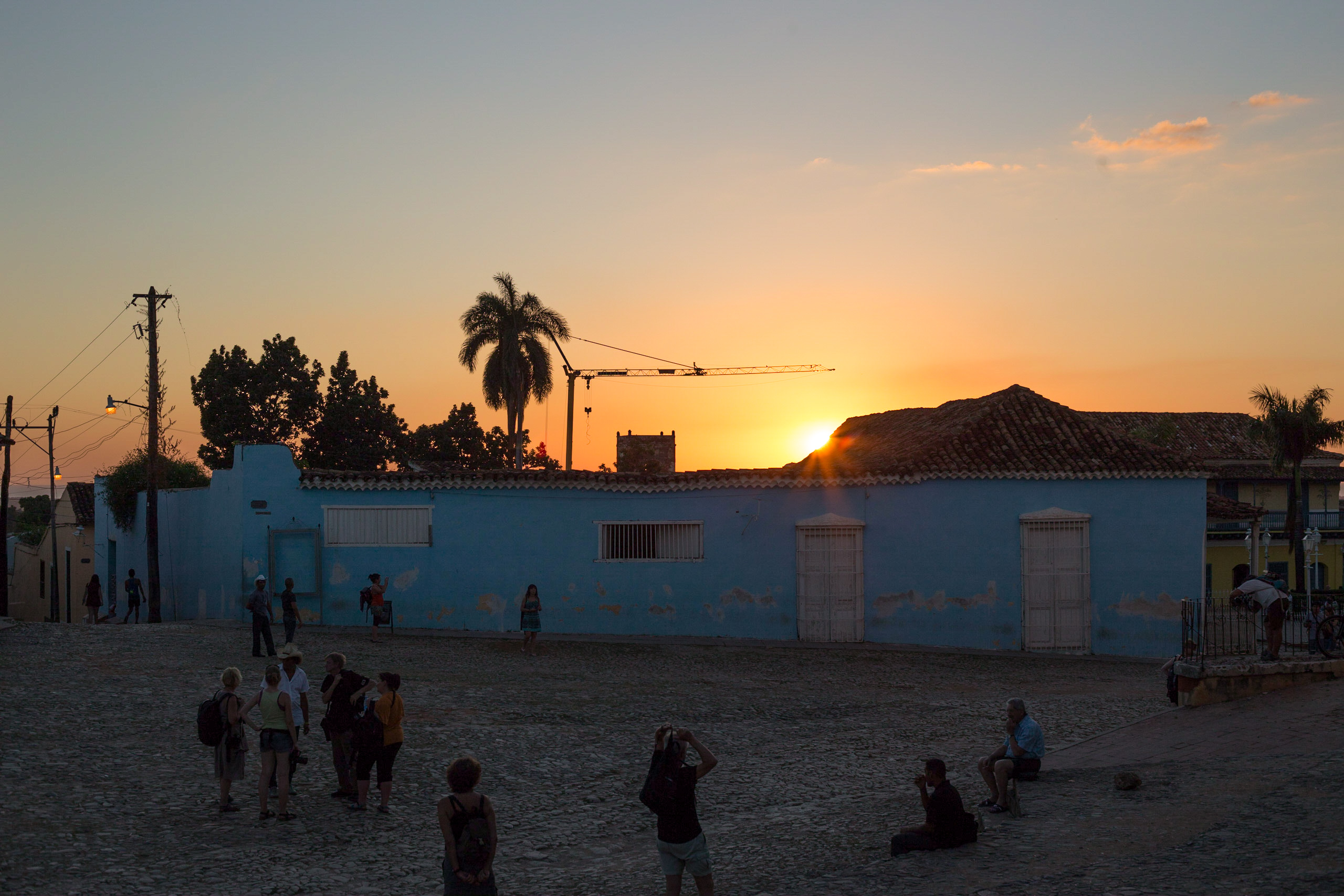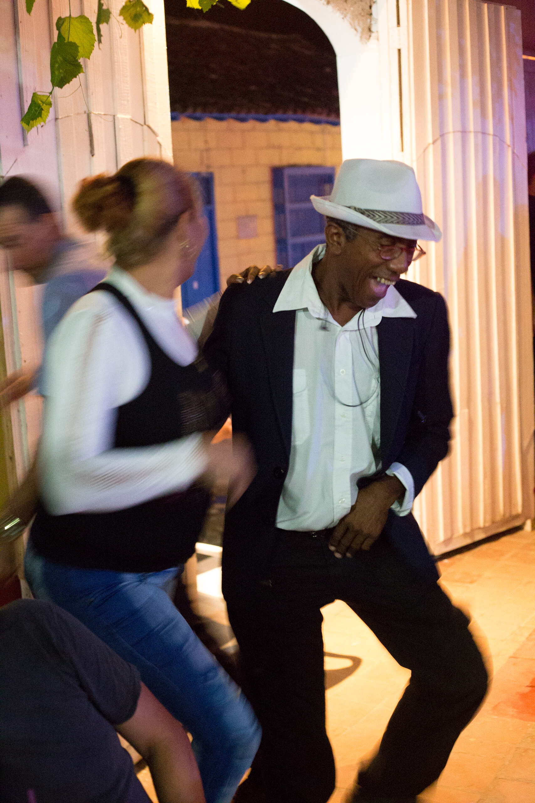 From the Historical Museum tower you can look out over the town, the streets curving round the hill, towards the Valle de los Ingenios, the valley of the sugar plantations.Plaza Mayor from the tower.A grand house on the corner of Plaza Major, two stories and with a balcony and intact original painted floral ornament! Most houses in Trinidad are single storey, the grander houses are two storeys and very occasionally they have three.Sunset at the Plaza MayorCatching the last rays streaming out from behind a perfect cloud beyond the Plaza MayorThe best salsa dancer in the Palenque de Los Congos Reales, always laughing.