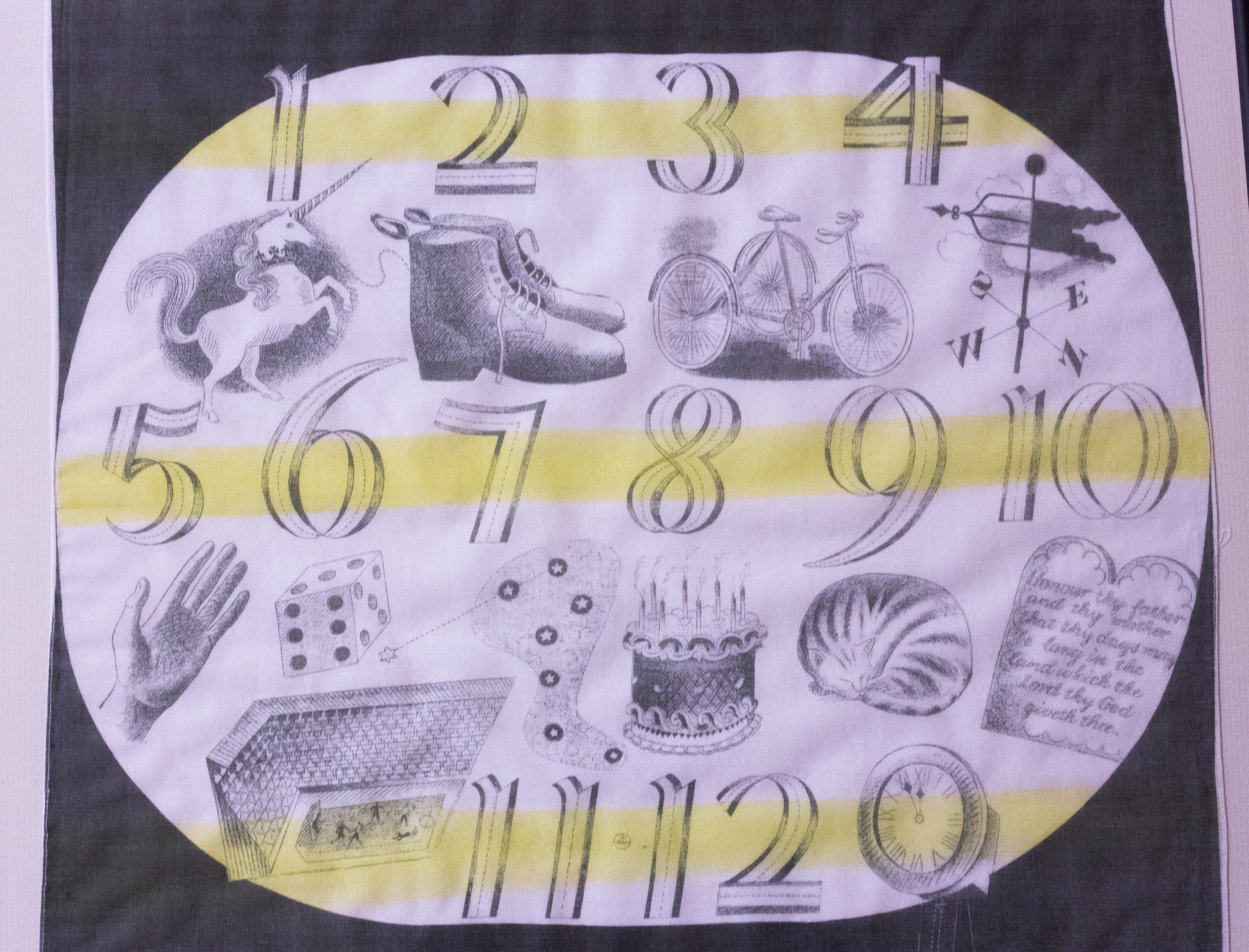 I took this photo of this in a friends house, it is a design based on inches, feet and yards, what’s missing from the photo are two stripes of a tape measure, one above, one below. It’s been printed on a linen handkerchief. Such an elegant and joyful representation of imperial units, his designs are so individual. His canon of work is relatively small, he died so young(lost at sea1942)