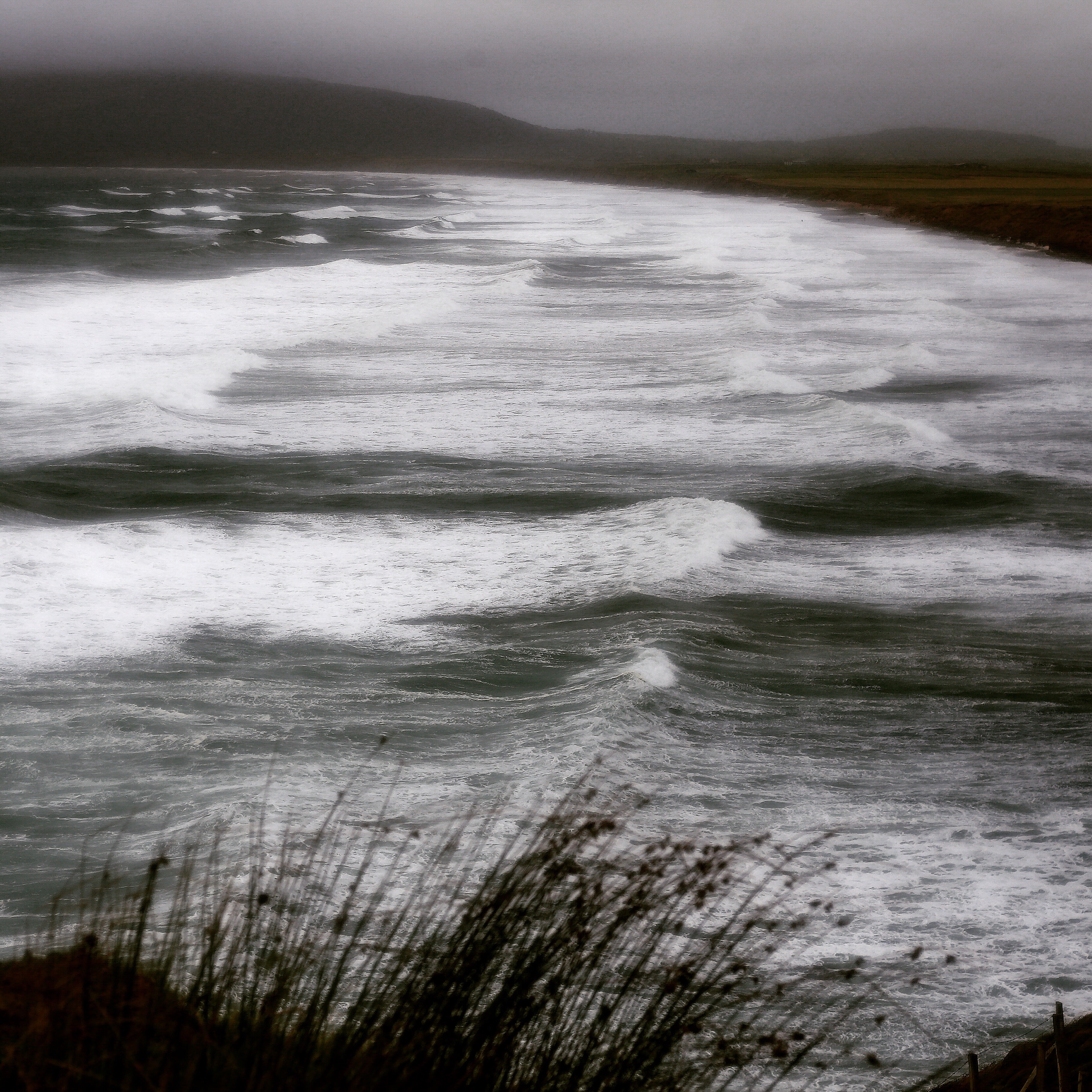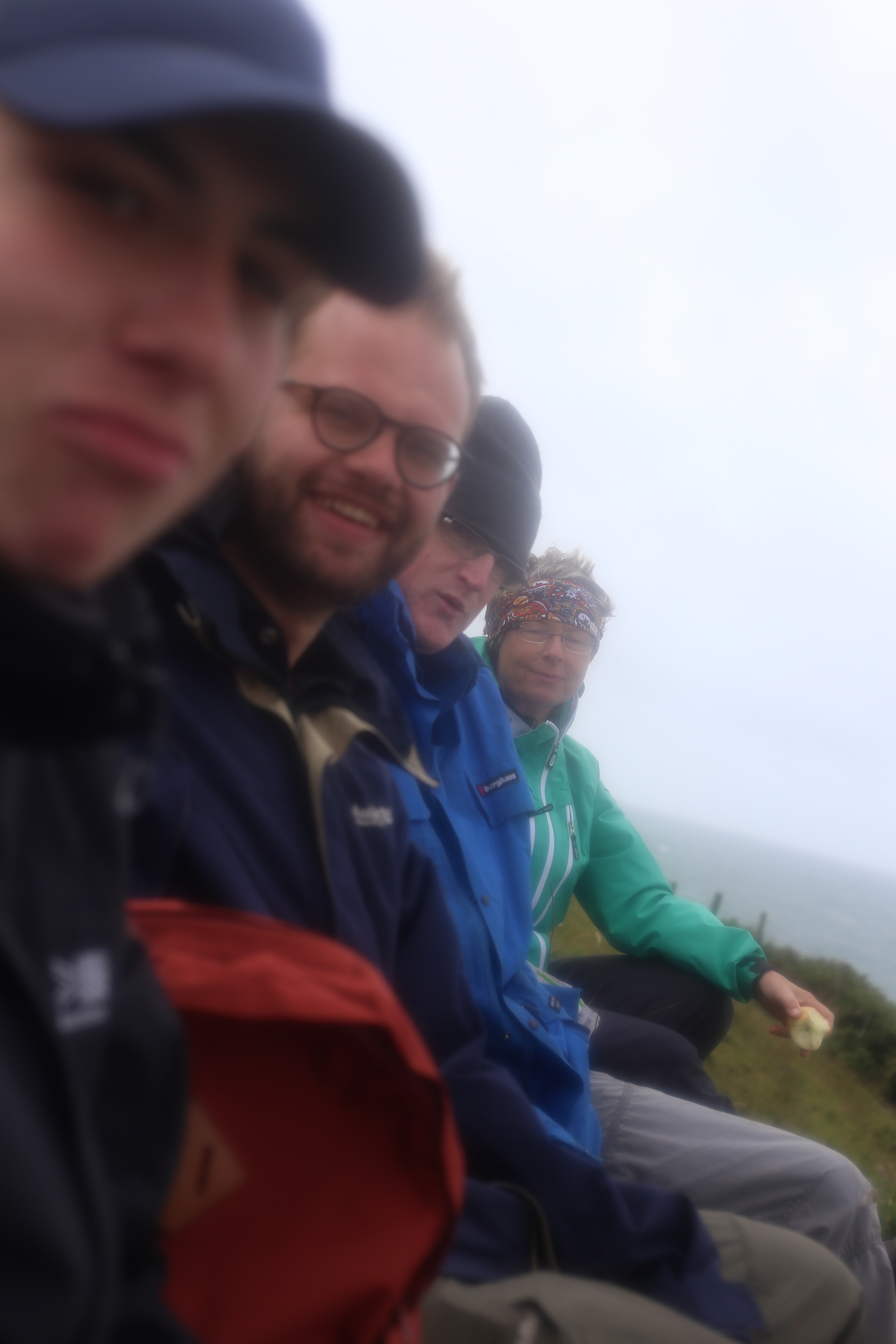 One day in early August I walked with friends along the north coast of the very end of the peninsular. The weather was overcast but not cold or wet. However the wind was gusting at around 50mph at some points. We walked partly on the beach but the tide was very high so we retreated to the sand dunes. The wind blowing in from the sea brought with it a blast of wet sand, stunting all exposed skin and smearing our glasses with a salty spray making visibility trying to say the least. Perversely it was actually enjoyably envigorating. Of course it also slowed us down and we nearly gave up when it came to the climb from the beach to the top of Uwch Mynydd. Up there the air cleared and there were fabulous views back towards Snowdonia, with sea on both sides.