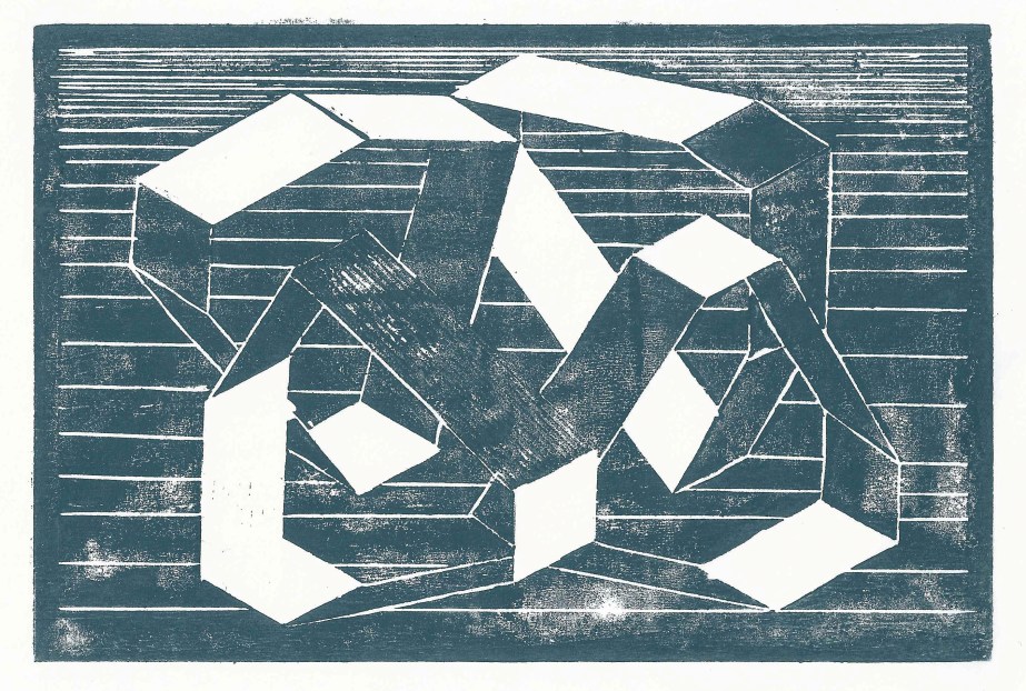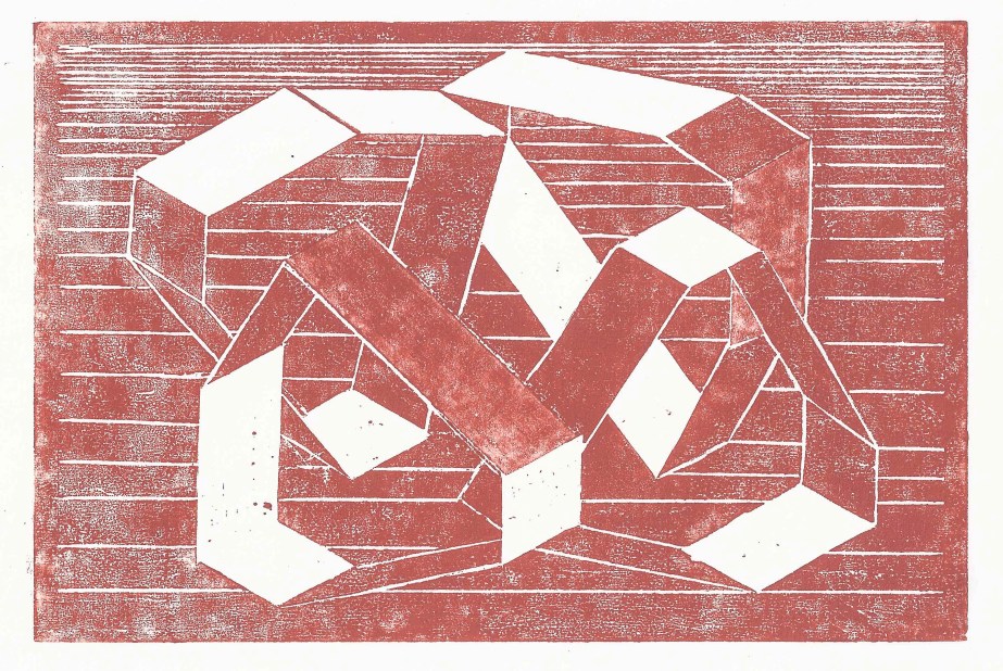 I made this two colour print at home, making a mistake with the registration, so its slightly wrong both horizontally and vertically. So much to learn!