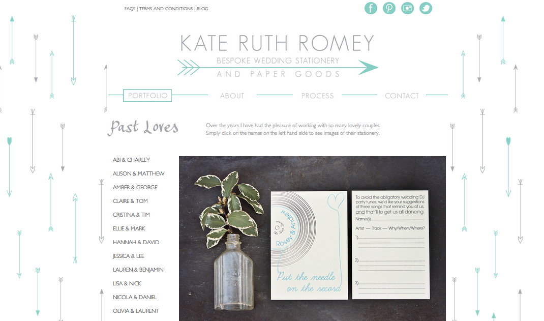 My daughter, who is a freelance designer of bespoke wedding stationery, created a design for her new website and I then transformed it from paper to web. I think it looks great. Kate Ruth Romey
