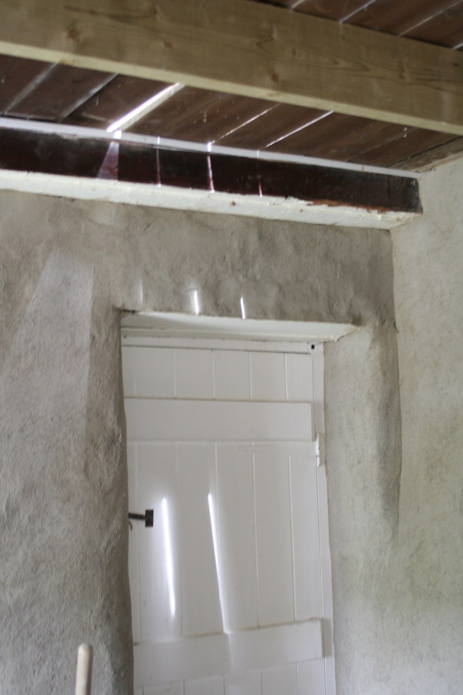 Light falling through gaps in the floorboards after the plasterboard lining had been removed. I was intrigued by the way the light continues down from the joist over the wall, where it splays out and also over the door where it becomes more focussed. I wish I had moved slightly to the right but someone was standing there and then the moment was gone.
