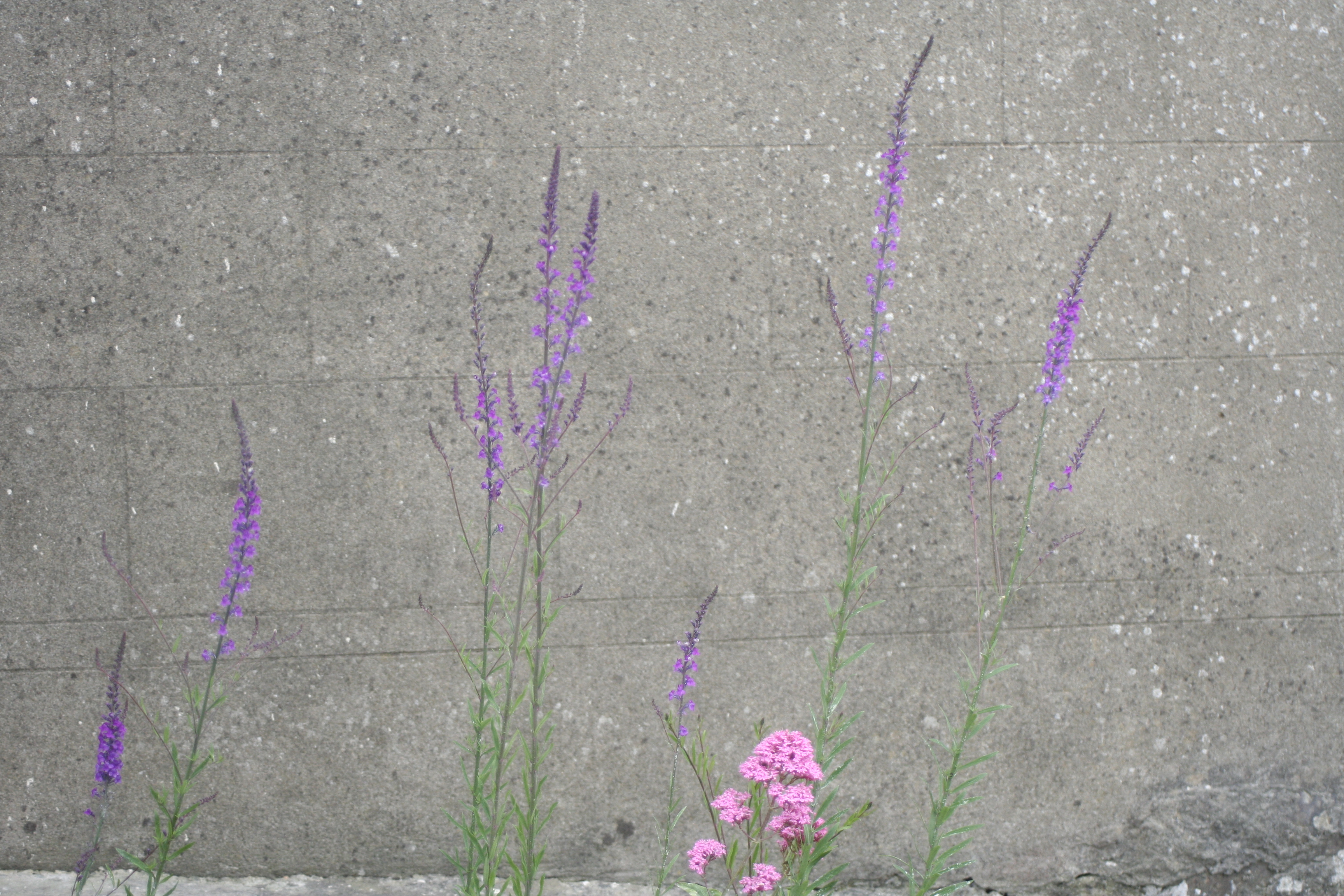 Grey as a colour theme is challenging but I found a couple of opportunities during a flying visit to Aberporth, a small village in Cardigan bay in West Wales.  Whilst we ate fish and chips sitting at the aluminium tables outside the “Caffi”, the sun played hide and seek but then went elsewhere, so the light was helping to show up greyness. The soft colours and lack of contrast drew my eye to these delicate stems, no doubt soon to be bedraggled by wind and rain, the fine incised lines in the smooth concrete wall behind providing an opposing yet supporting structure.