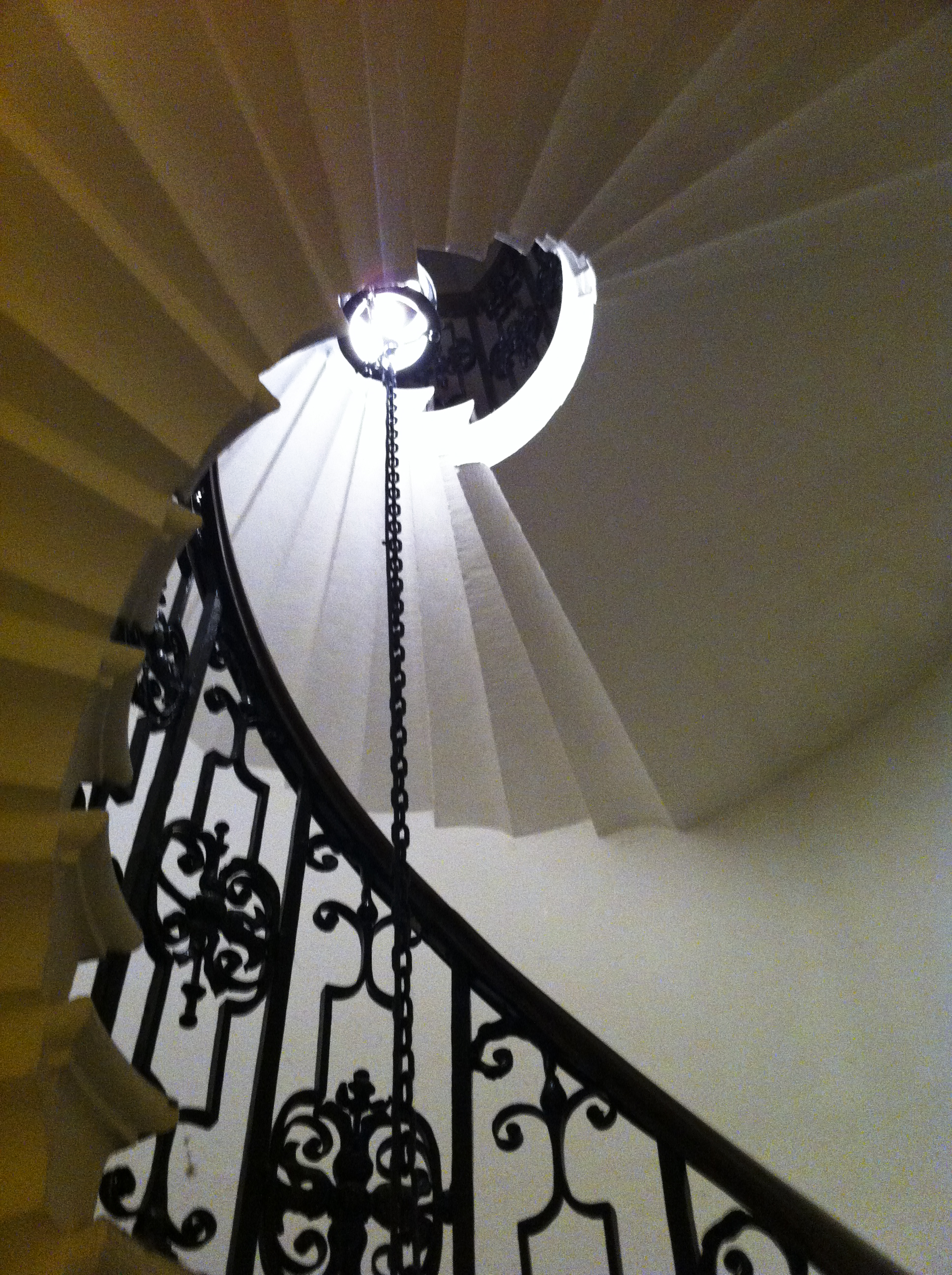 The spiral staircase leading back down to reality was a delightful  example of period stone and metal craftsmanship.